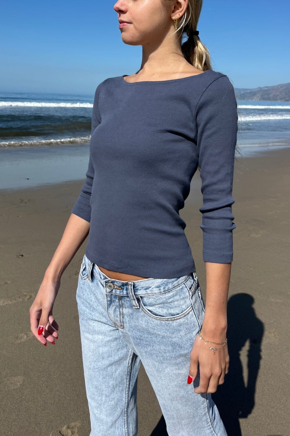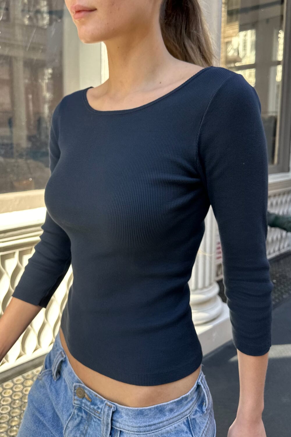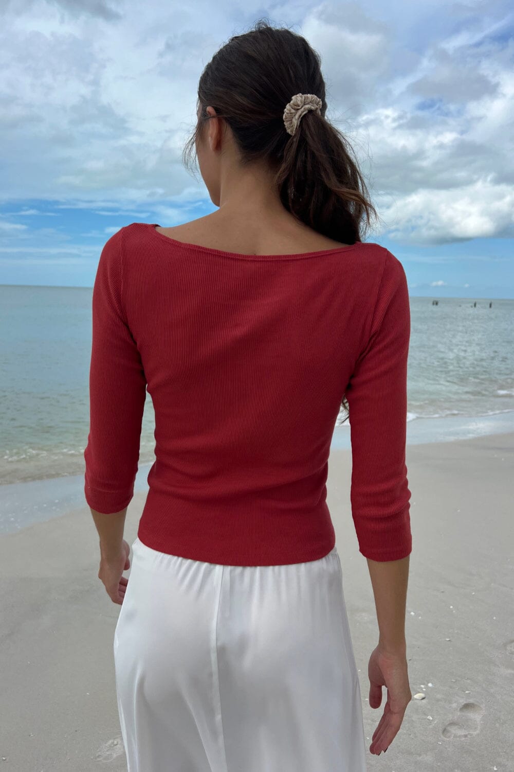 Boatneck quarter sleeve top.