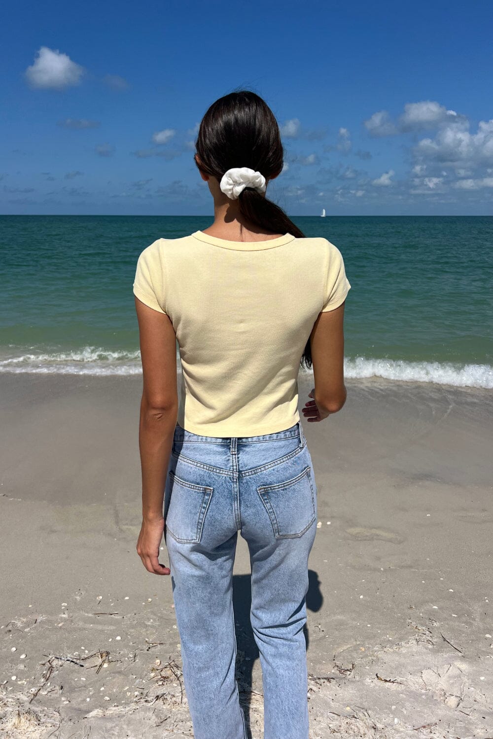 Fitted, cropped short sleeve tee with a crewneck collar.