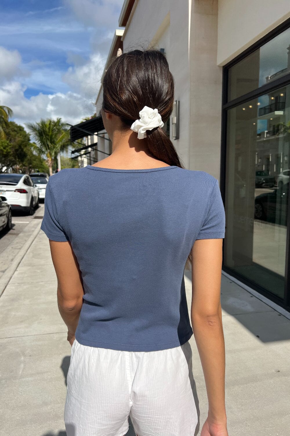 Soft cotton short sleeve tee in faded blue with the Chicago graphic printed in white on the chest.