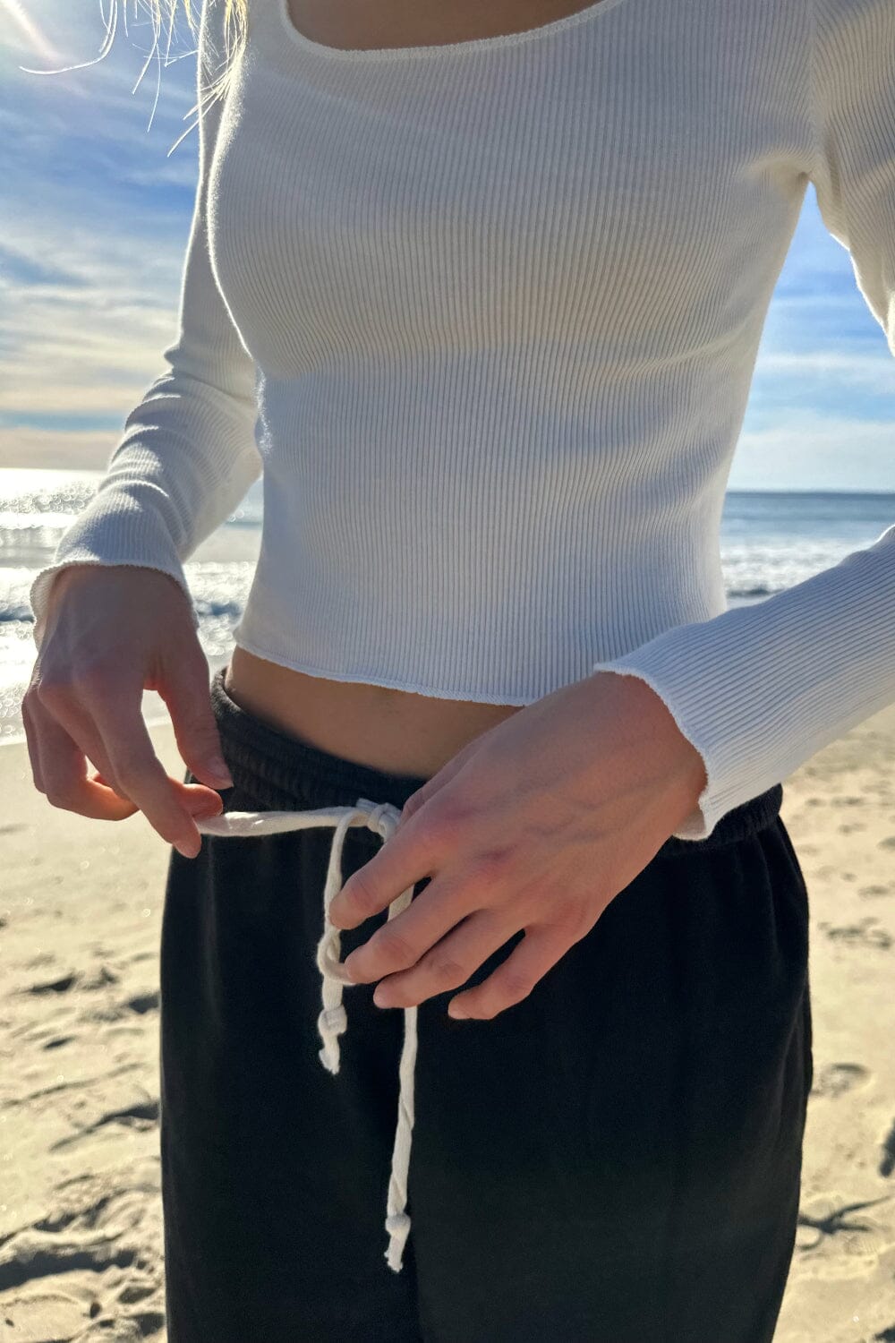 Thick and cozy cotton waffle with an elastic tie waistband and side pockets.