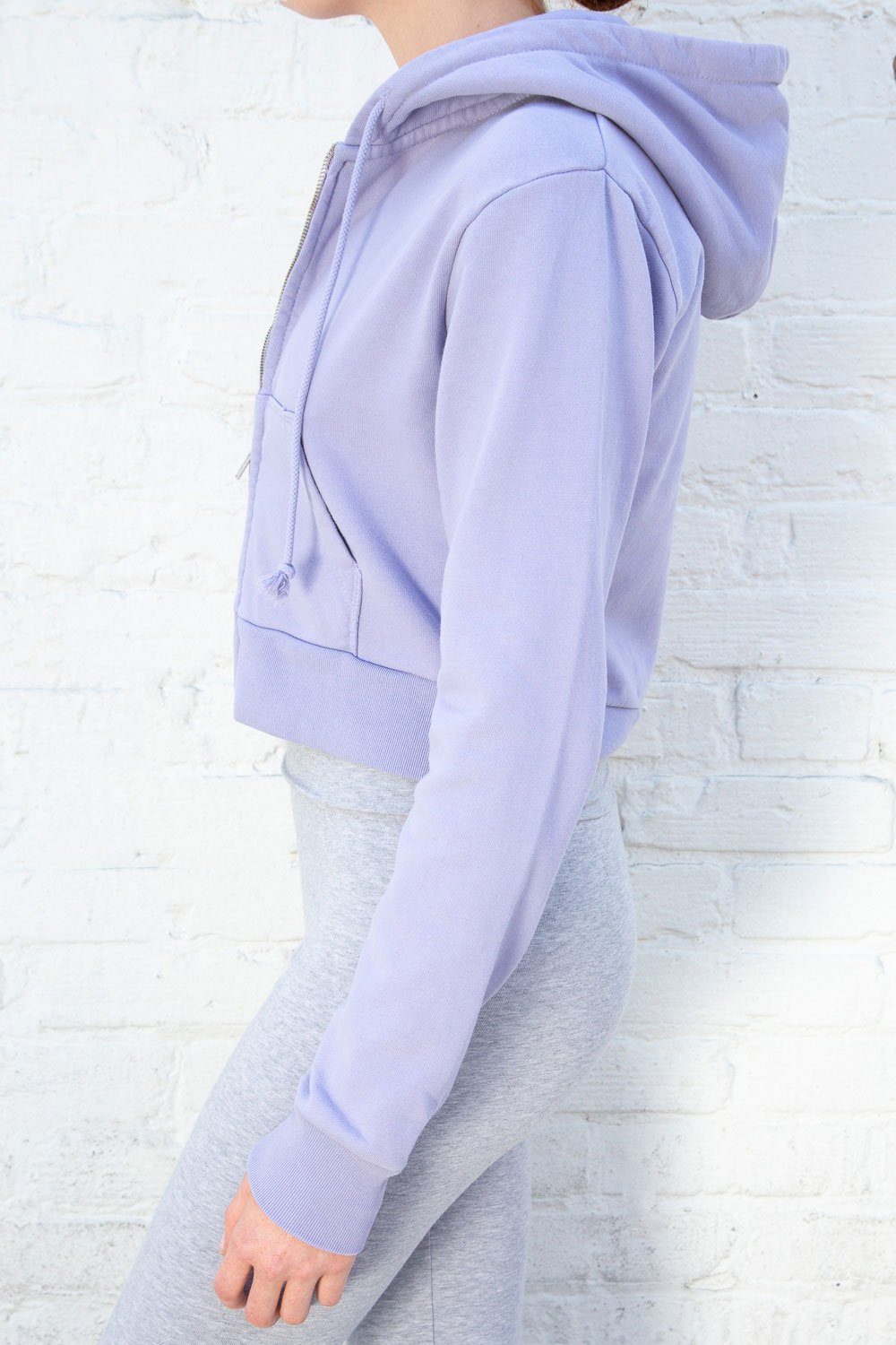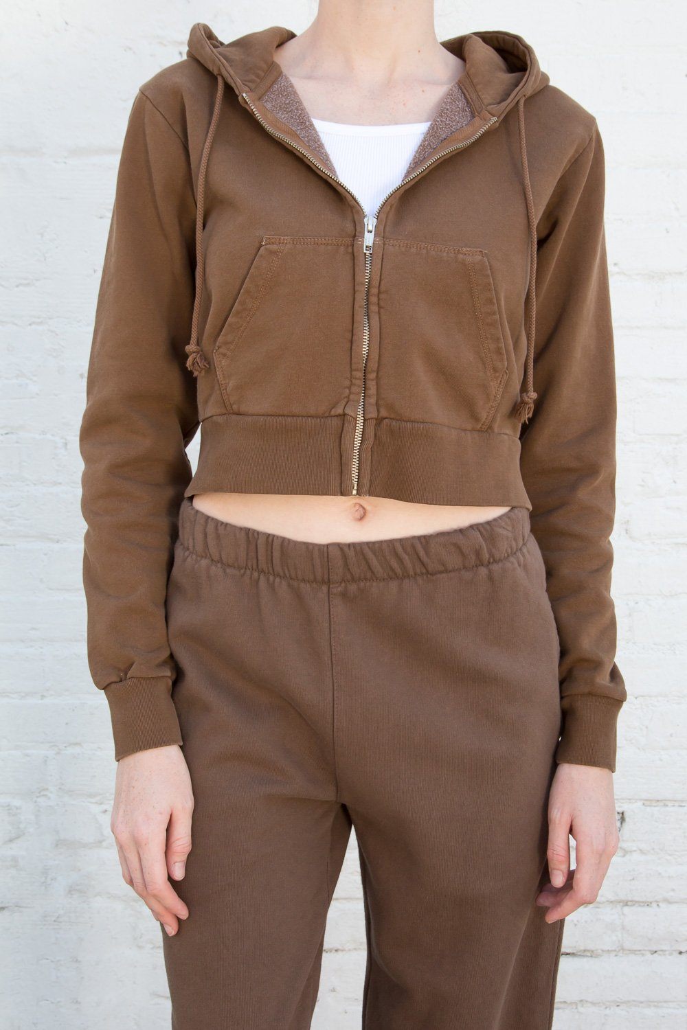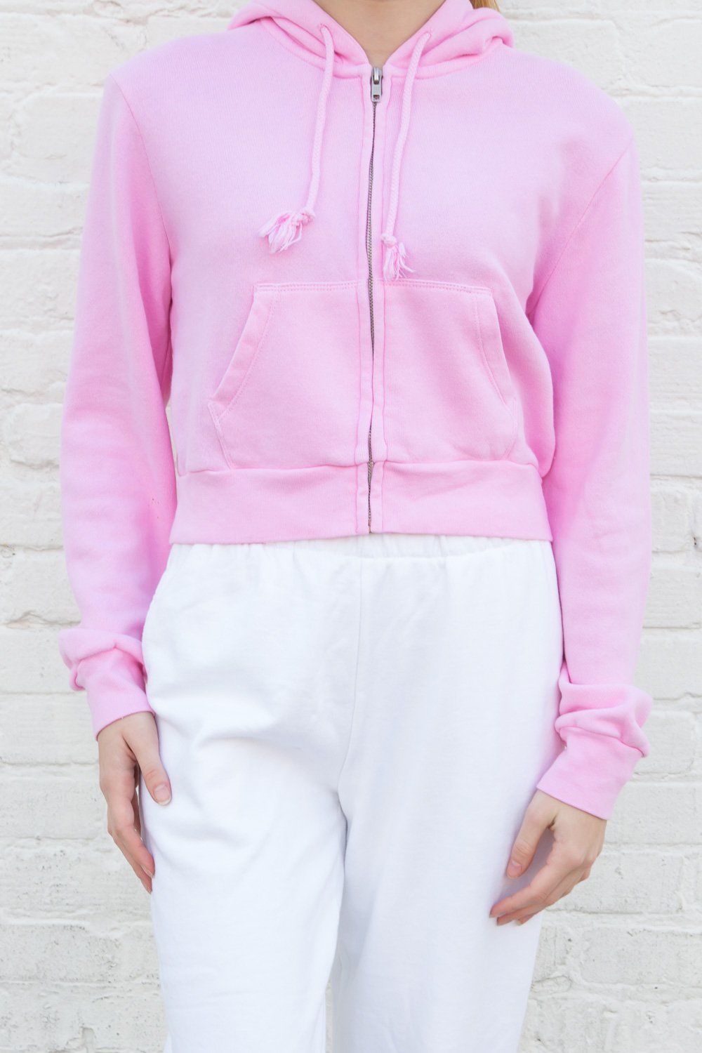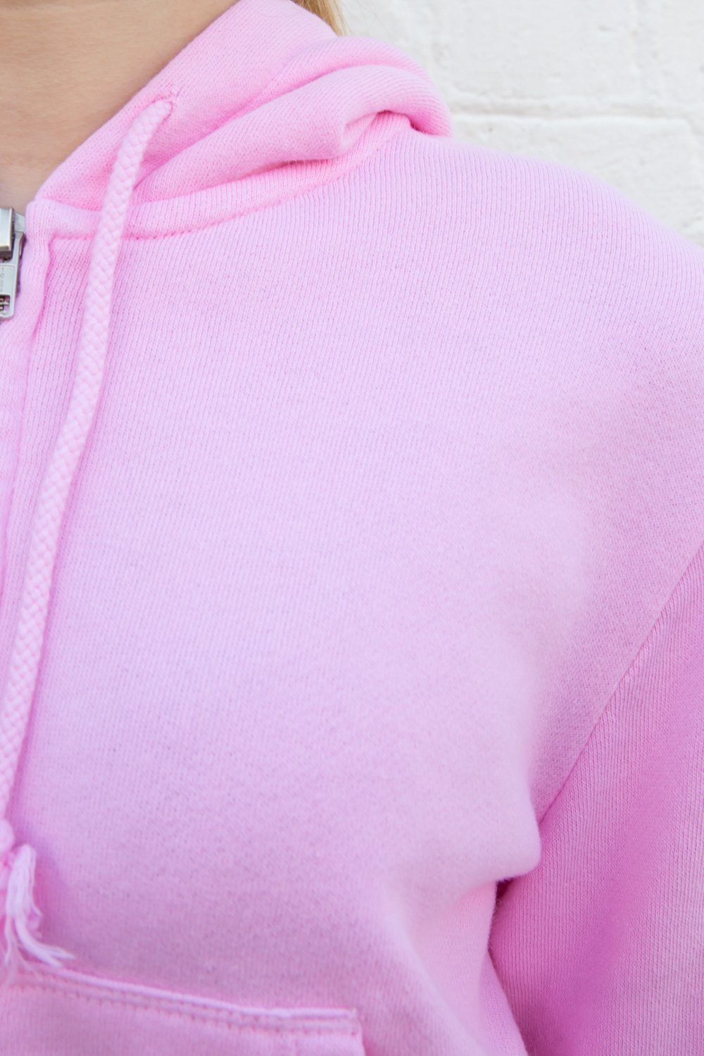 Super soft cropped fleece-lined hoodie with a zip-up front and side pockets.