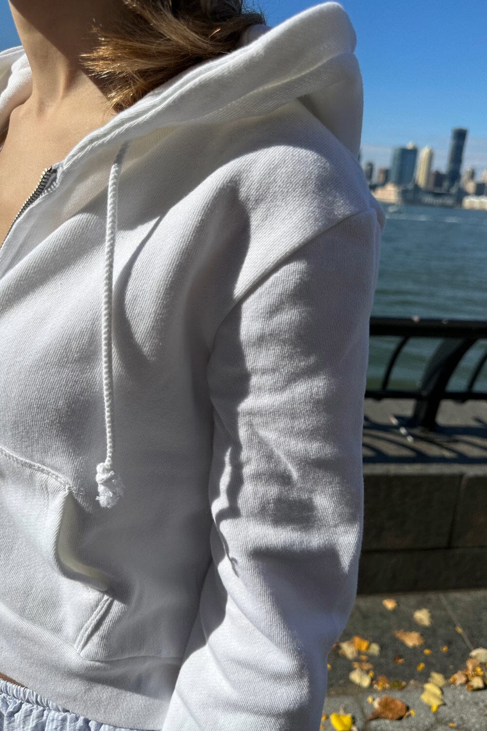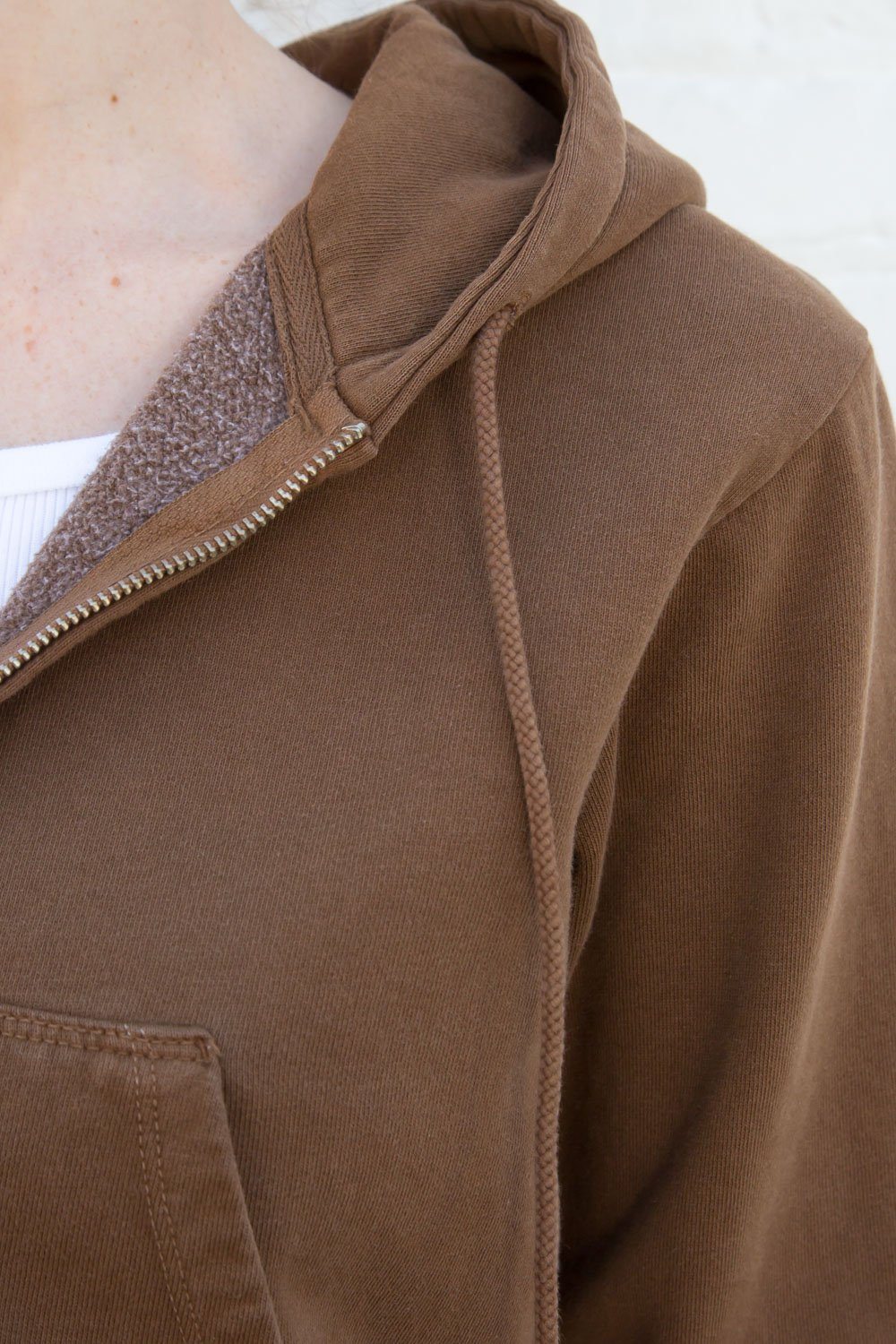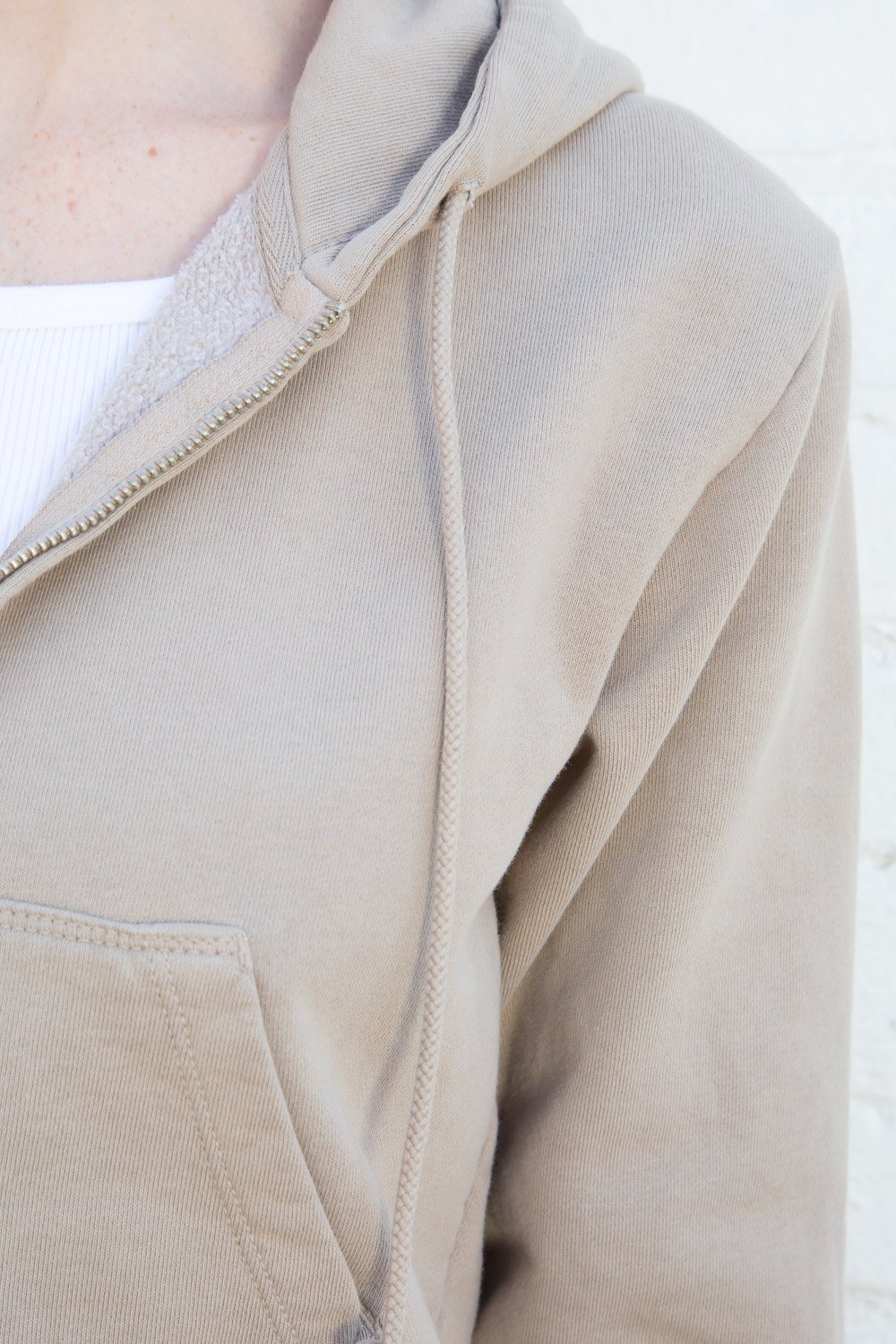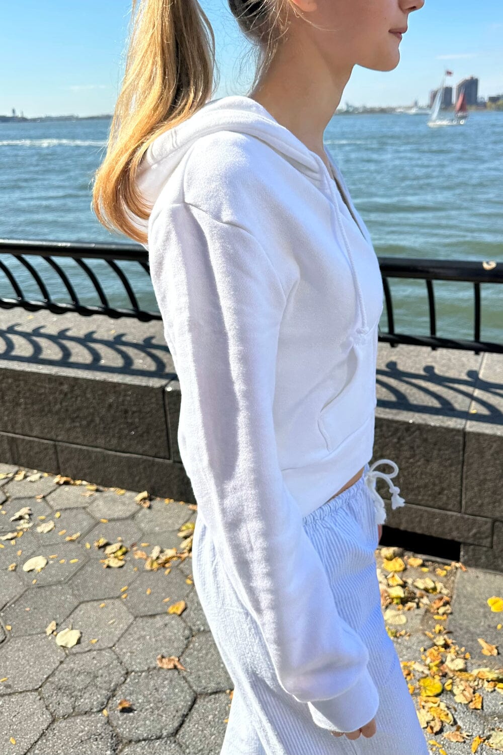Super soft cropped fleece-lined hoodie with a zip-up front and side pockets.