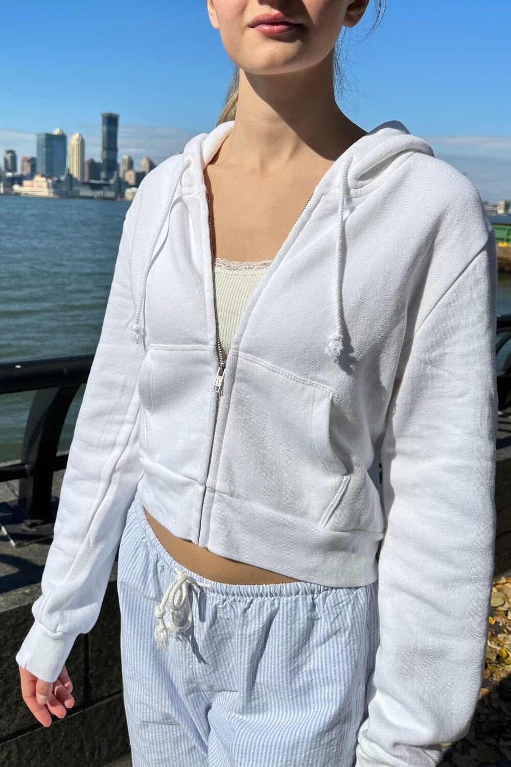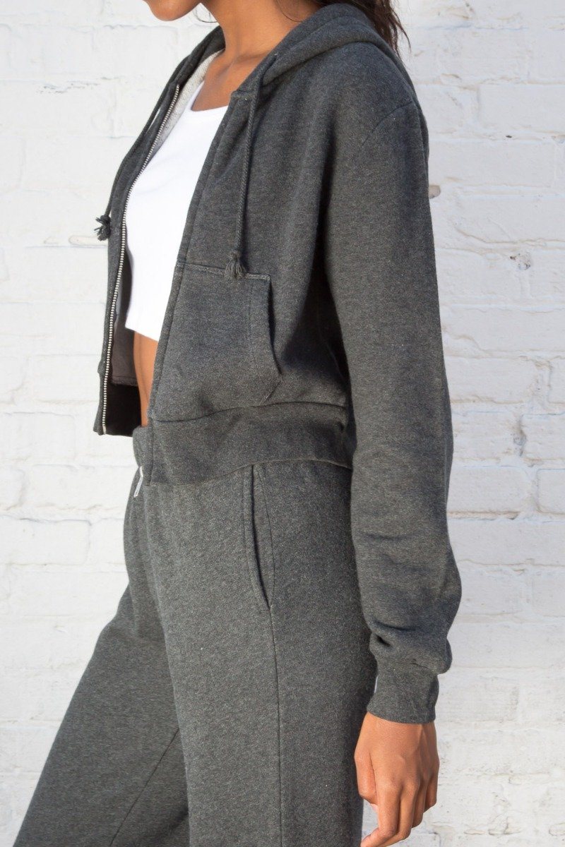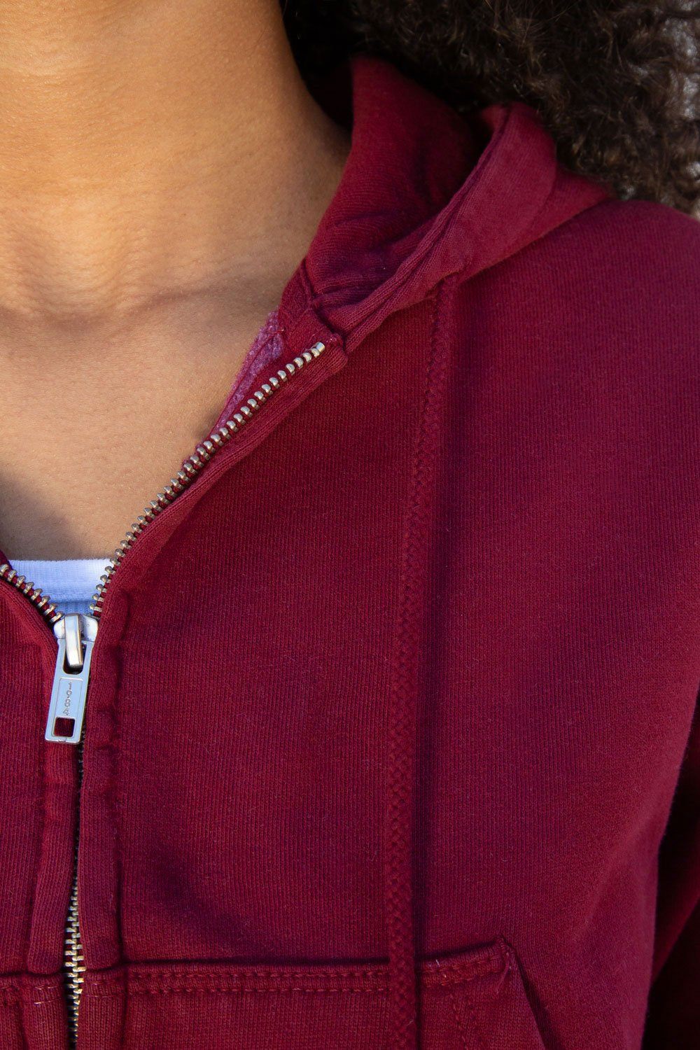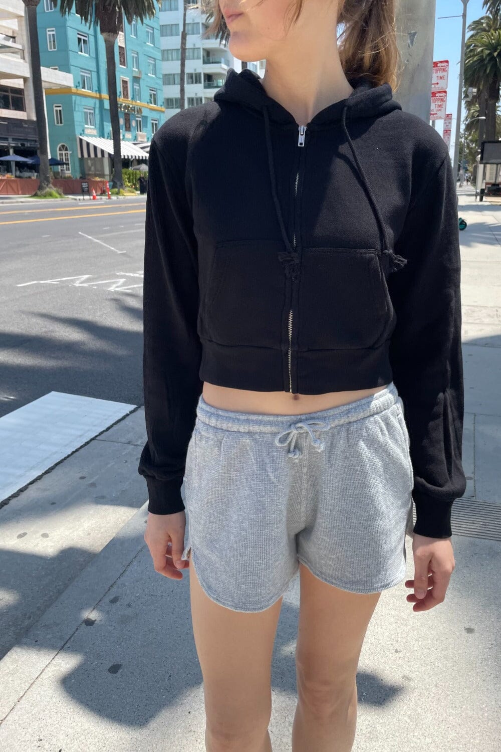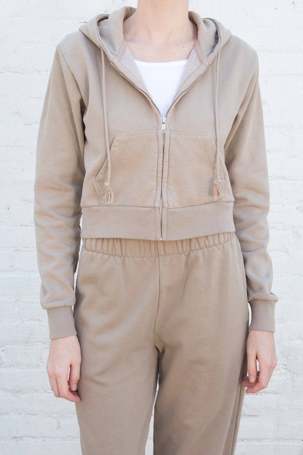 Super soft cropped fleece-lined hoodie with a zip-up front and side pockets.
