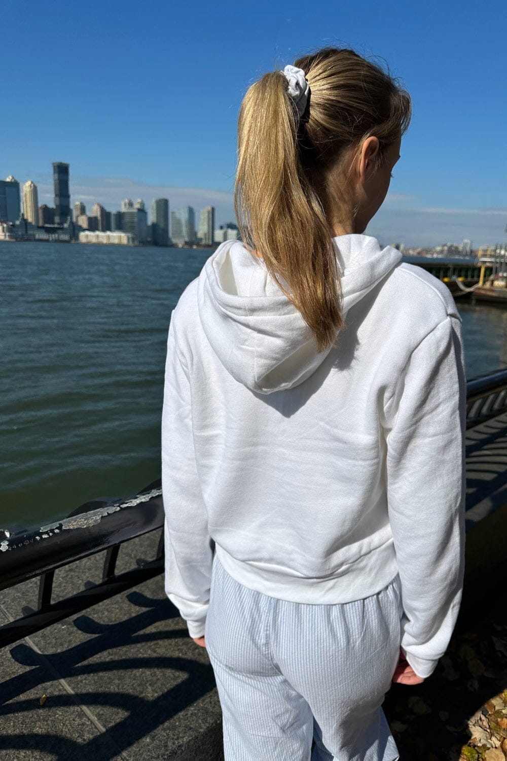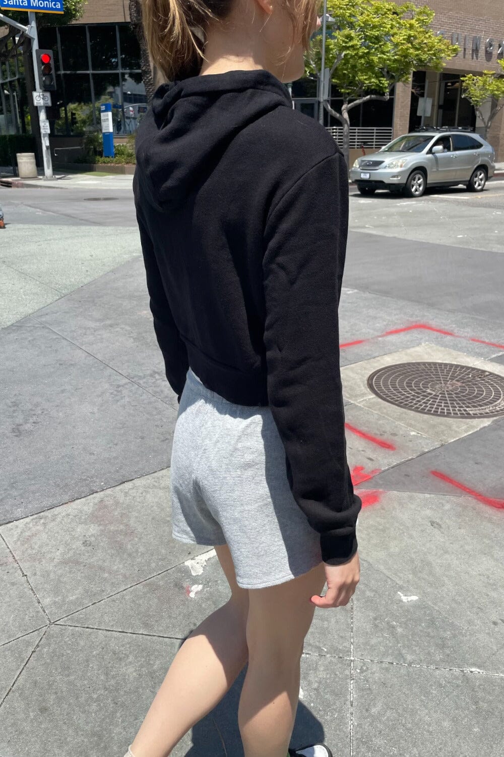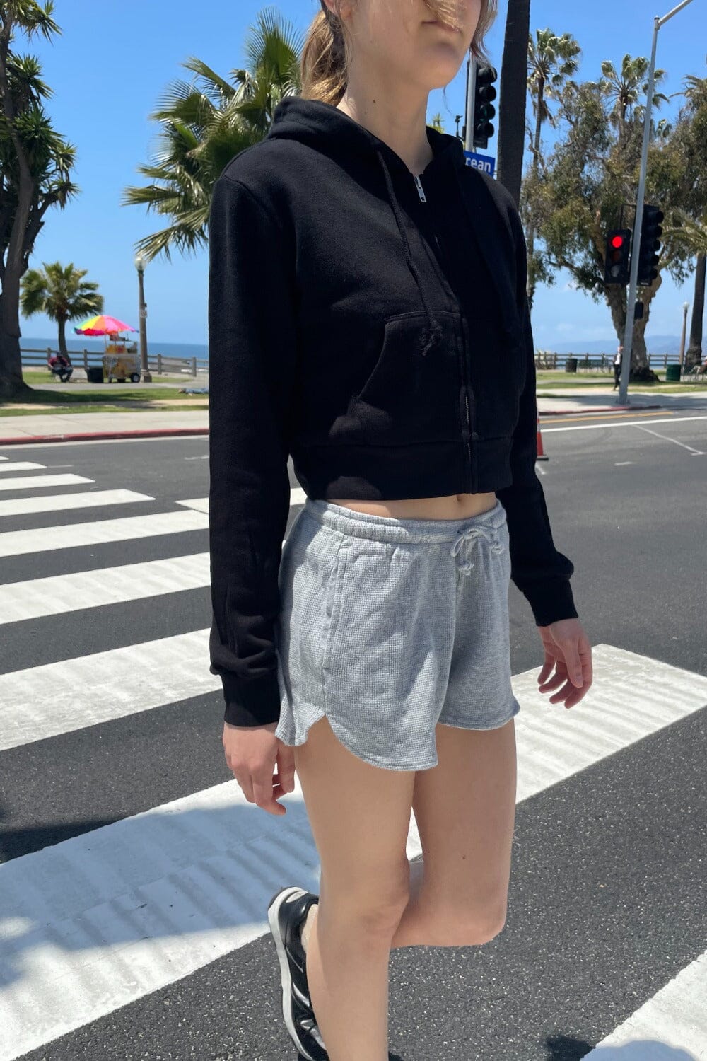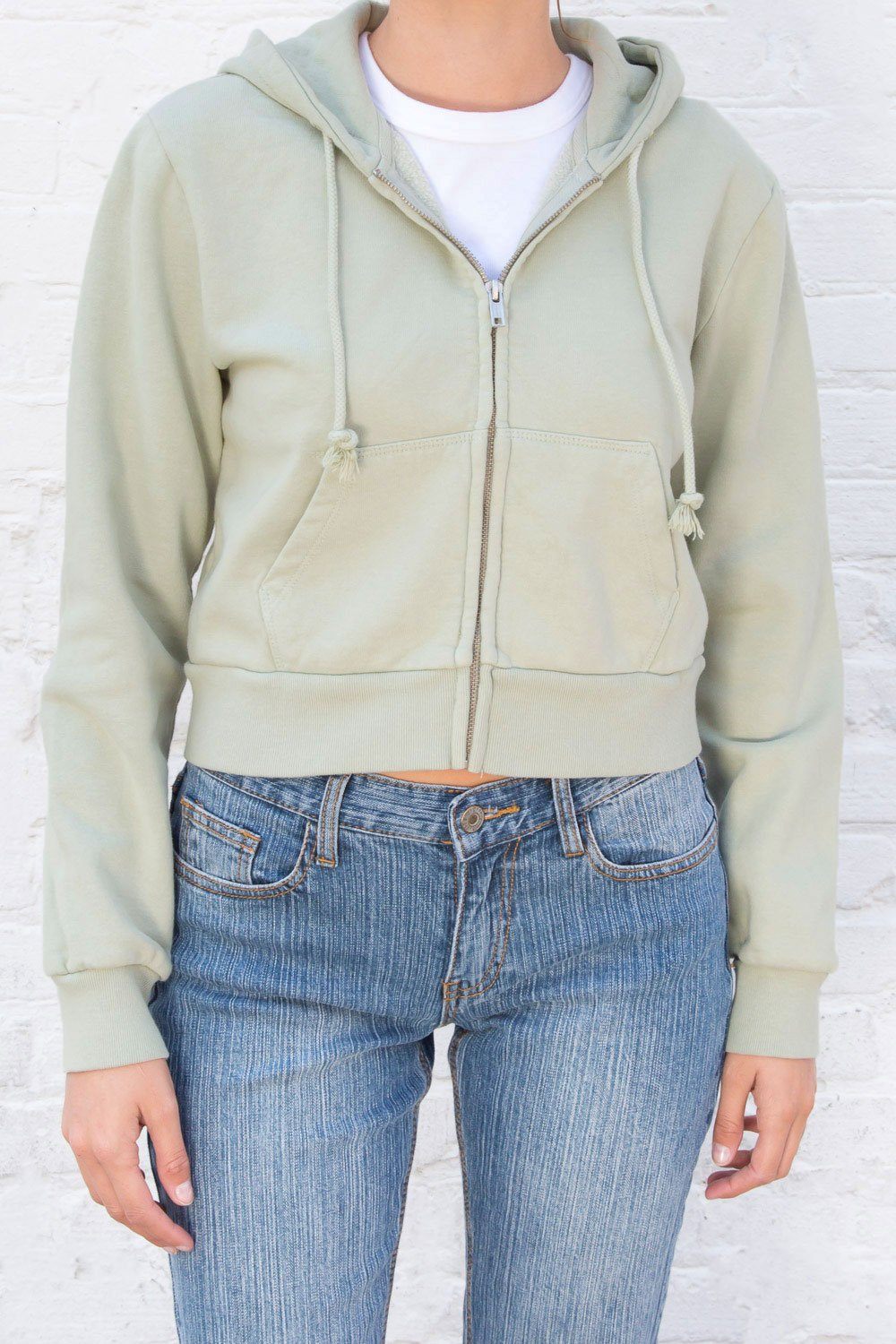 Super soft cropped fleece-lined hoodie with a zip-up front and side pockets.
