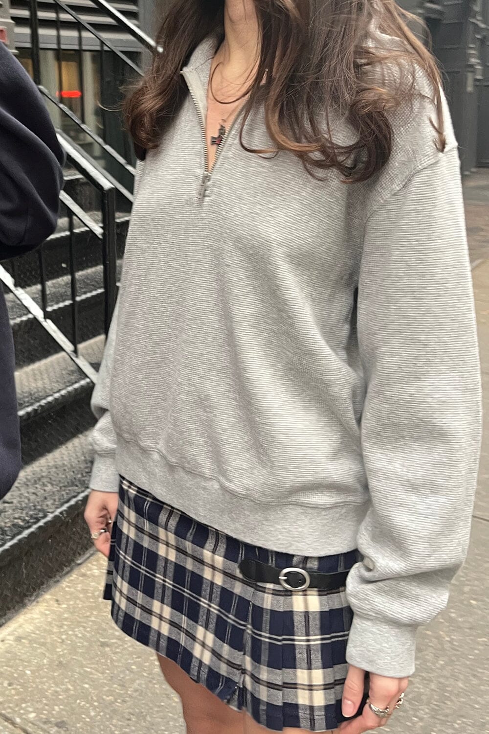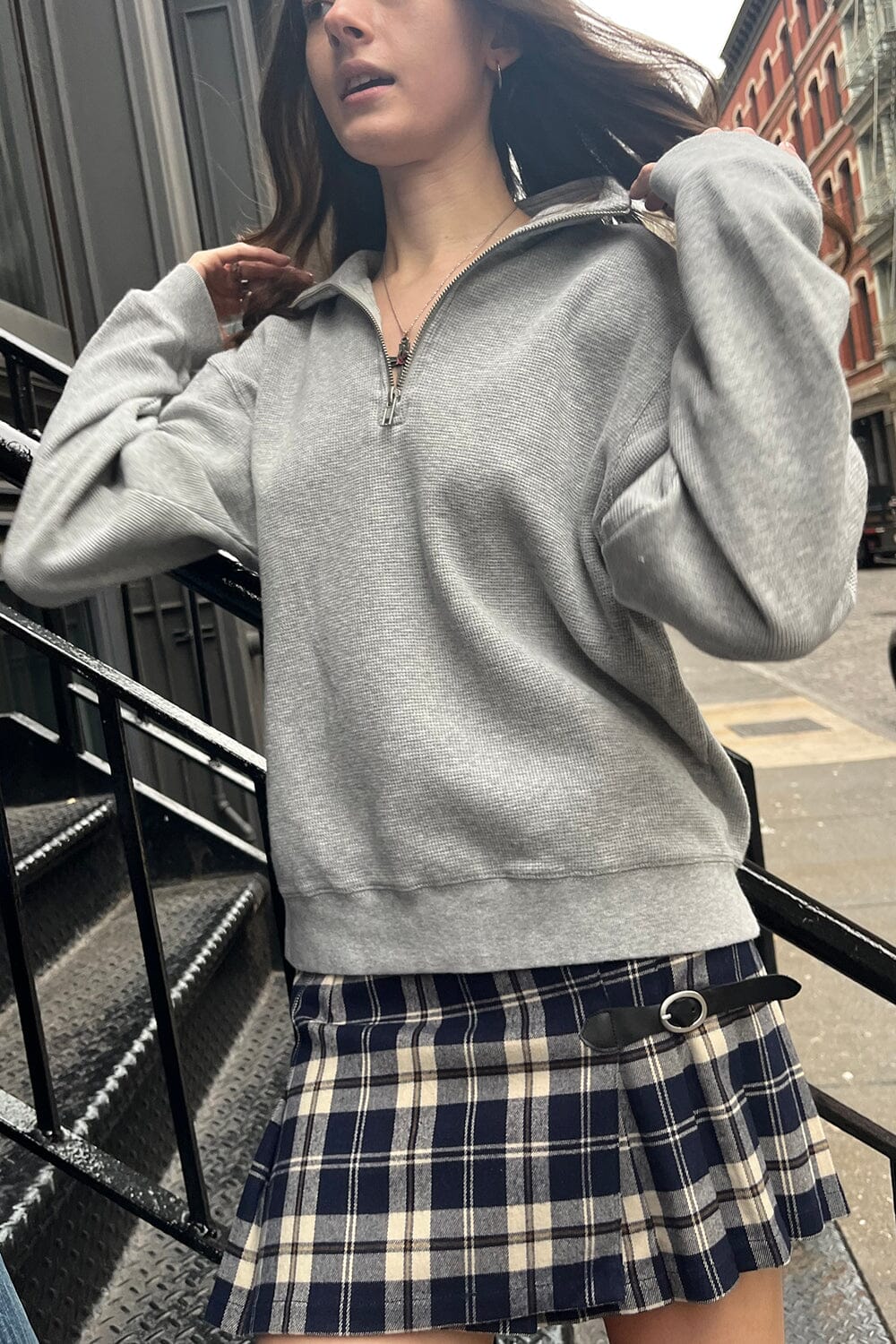 Soft collared thermal pullover sweatshirt with 1/4 front zip.